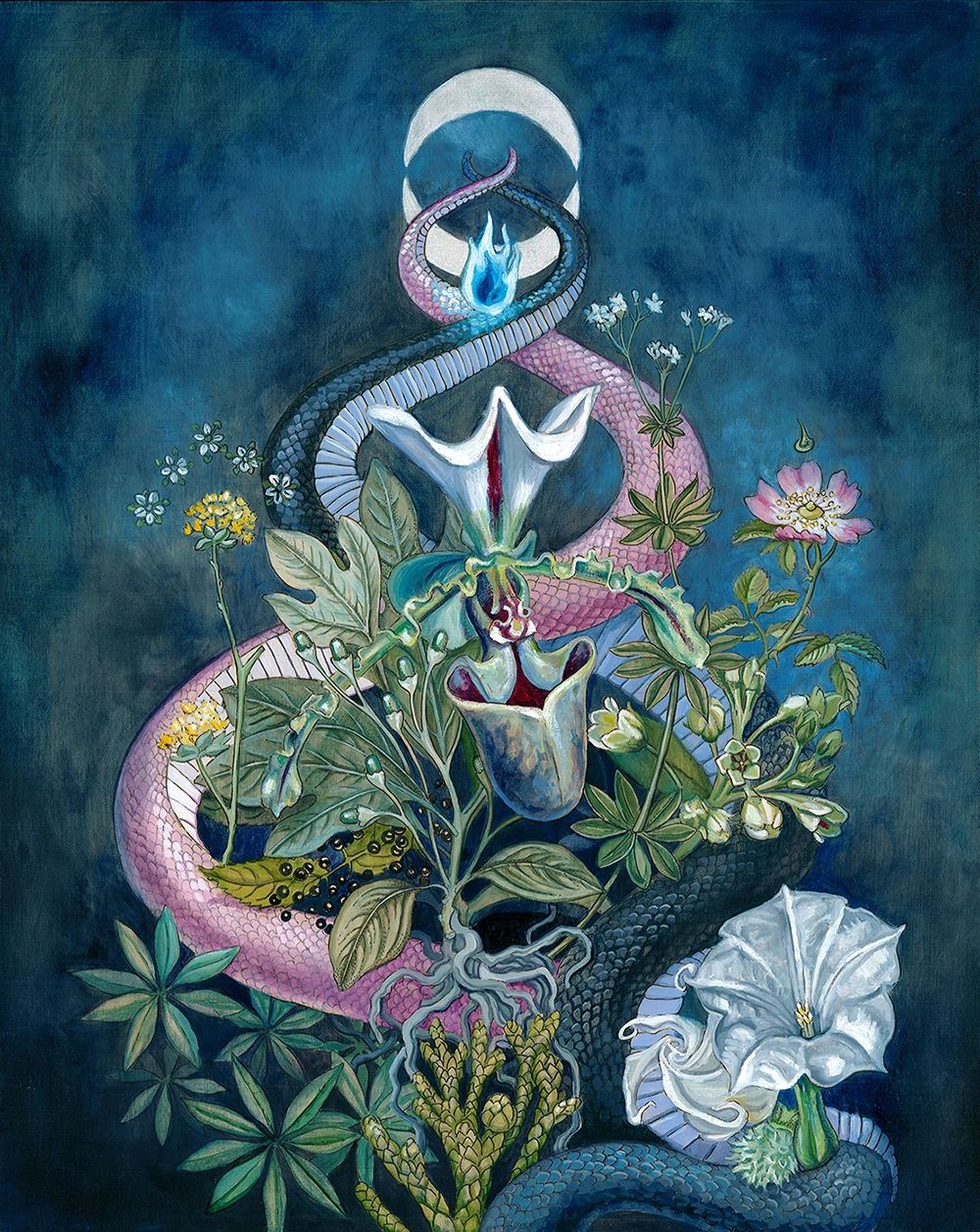 I Am a Snake Dreaming, oil on wood, 41x36, 2019